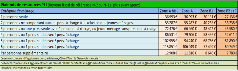 - Respecter le plafond de ressources PLI (Votre Revenu Fiscal de Référence N-1 ou N-2 doit être inférieur au plafond de ressources PLI vous concernant) :